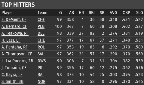 Andy Thompson of the Brothers, Albert Pentana of the Stags, and Carlos Kayra of the Rivals should be at the top of the league as they lead strong rosters.