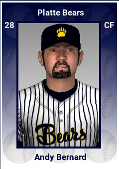 There are a lot of great batsmen in this league, but for our money, Andy Bernard of the Platte Bears stands out from the pack. He may not hit a lot of home runs, but what he lacks in power, he makes up for in smarts at the plate and speed on the bases. Unfortunately, the Bears team won’t do much to support him.