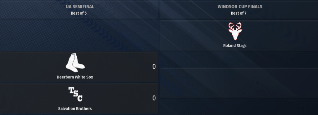 - The playoff field is set. The Roland Stags are regular season champions. They will play in the Windsor Cup Finals against the winner of a SemiFinal Series between the Salvation Brothers and the Deerborn White Sox. (9/17)
