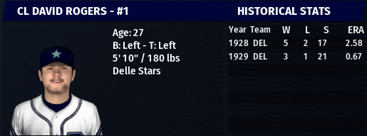 1929 UA Reliever of the Year: David Rogers, Delle Stars