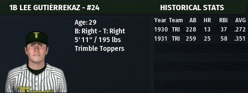 1931 NPL MVP: Lee Gutierrekaz, 1B, Trimble Toppers (.351 AVG, .414 OBP, 25 HR, 58 RBI)