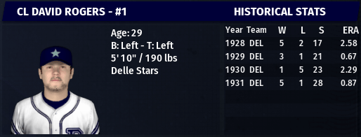 1931 UA Reliever of the Year: David Rogers (2), Delle Stars