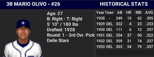 1933 UA Most Valuable Player: Mario Olivo (3), 3B, Delle Stars