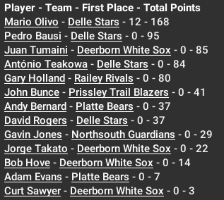 Players have filed for free agency. This is a big year for free agency, with several big names testing the market. The Delle Stars, Deerborn White Sox, Roland Stags, and Platte Bears are among the teams being hardest hit by the free agent migration. This off-season will be very important for the continued success of these clubs.